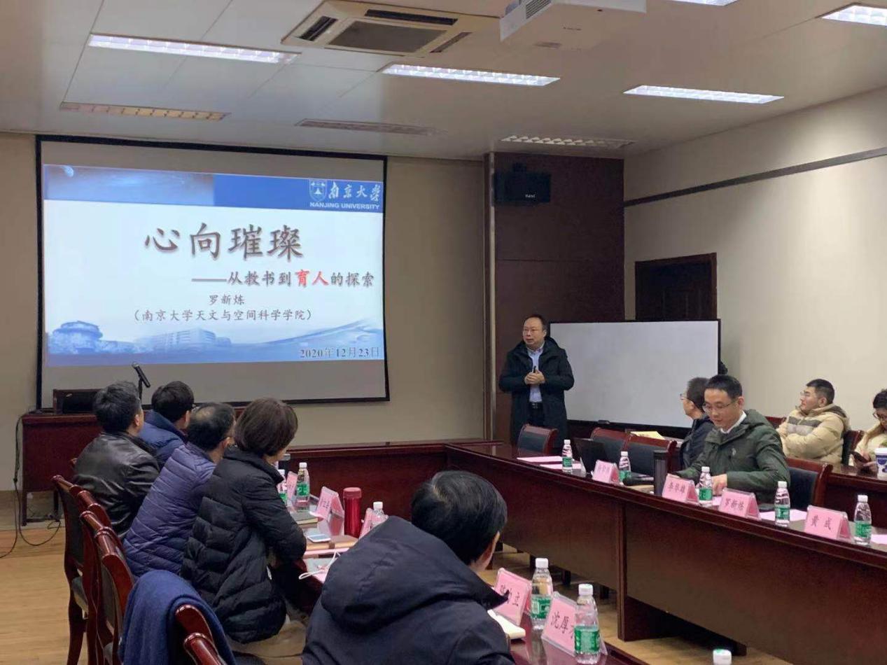 接下来,罗新炼教授以《心向璀璨——从教书到育人的探索》为题带来分享。罗教授以《初等数理天文》的实际经历为例,将当老师分为教学、教书、教育三个阶段,他倡导教书阶段要经历积累知识、教学机智、教学技能,教学阶段要从员工的角度去出发,引导员工自主学习,加强育人的责任感和使命感,教育阶段应根据不同课程的特点,深挖育人元素,展现“大视野”、建立“大课堂”、涵养“大人格”,建立员工与老师心灵相连的课堂,培养有价值辨识、有知识素养、有丰盈情感的人。