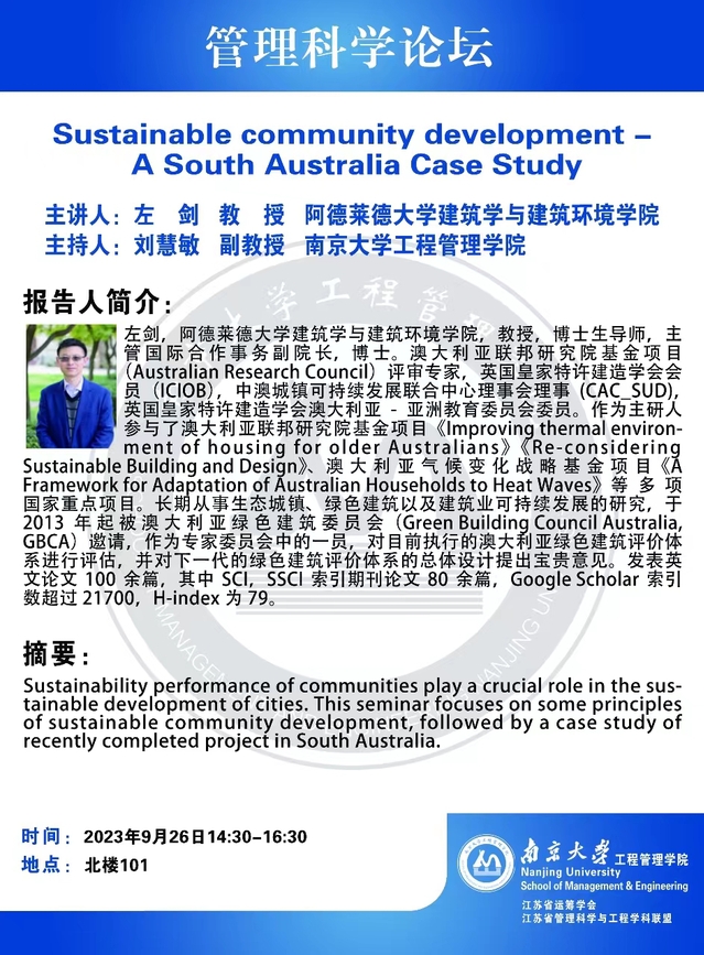 管理科学论坛:Sustainable community development - A South Australia Case Study