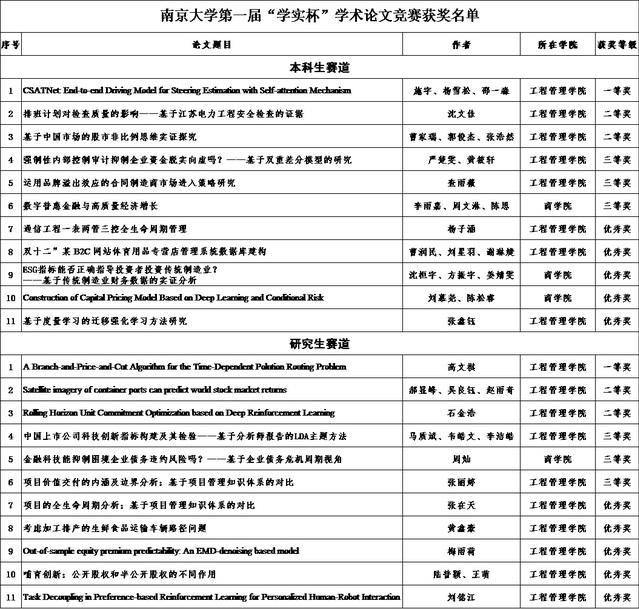 至此,betway88西汉姆联第一届“学实杯”学术论文竞赛圆满落下帷幕。征程万里云鹏举,风正帆悬正可期。工管学子要肩负报国担当,发挥专业交叉复合优势,弘扬南大人“板凳要坐十年冷,文章不写半句空”的学术精神,昂扬南大人“宽德养士、至乐成学,吾道在国、与世恒新”的精神追求,扛起“再创佳绩、争做表率”的共同使命,为建设“第一个南大”接续奋斗。