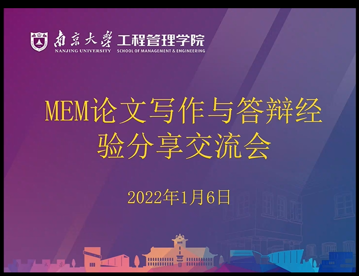 本次活动邀请到了2019级第一位工程管理硕士(MEM)毕业生沈健宇同学进行分享交流。