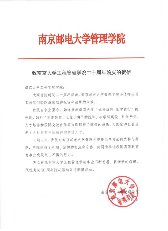南京邮电大学管理学院致betway88西汉姆联贺信