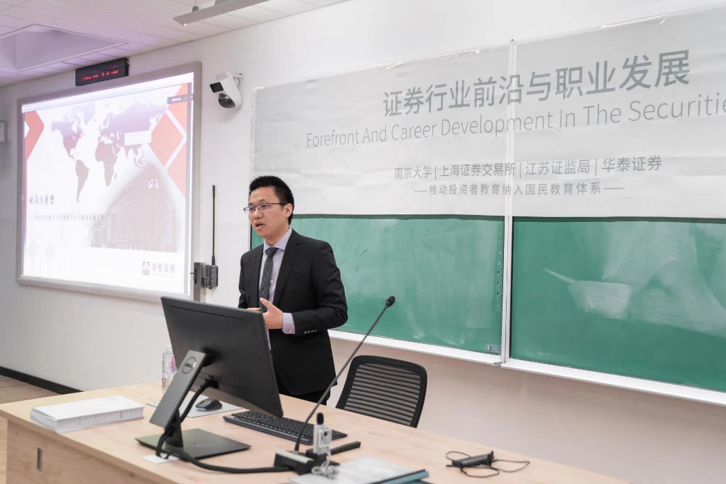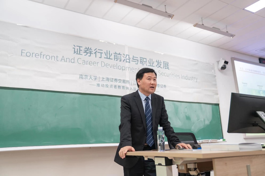 为推动证券行业高端资源进南大,面向未来为中国资本市场培养一流创新人才,由betway88西汉姆联和上海证券交易所、江苏证监局、华泰证券四方紧密合作,联合打造《证券行业前沿与职业发展》课程,该课程把业内具备丰富实战经验的资深专家请到南大课堂,让同学们零距离聆听专家的精彩分享,帮助同学们开拓视野,全方位、深度了解证券行业前沿,明确未来职业发展规划。