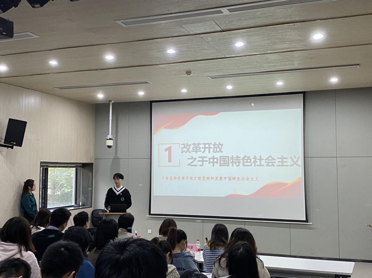 2020级硕士第三党支部的张鑫磊同志展示了微党课《社会制度探索的中国方案》,从改革开放之于中国特色社会主义、中国特色社会主义之于改革开放、改革开放的成就等三个方面阐述了对社会主义制度的学习理解。他表示,改革开放是一场思想大解放,也是党的一场自我革命,改革开放要取得更大的发展成绩,关键在于始终坚持、不断加强和改进中国共产党的领导。40年的改革开放之所以能取得巨大发展成就,始终沿着正确航向前行,核心就在于中国共产党的掌舵与领航。