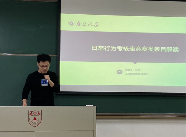 班会邀请到2016级自动化专业刘洋和金融工程专业张曦予进行大学学习和生活经验分享。刘洋从日常行为考评细则中关于学科竞赛的激励解读出发,向同学们详细介绍了参加竞赛对自身提升学术科研能力的帮助。张曦予则从专业学习、公益服务、员工工作等多个角度出发,向大家展示自己的收获,并结合实际提出切实有用的建议。学长学姐均建议大家提前制定成长目标,用目标引领行动。