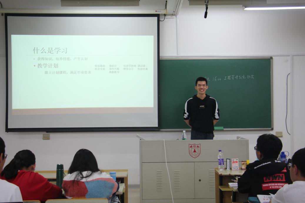 在“听总结 践行动”板块,2017级计金班的黄玉豪和史健均同学分别分享了自己在实验班三年的学习与生活。黄玉豪谈到在实验班交叉复合的培养模式下,数学是学好计算机和金融学的前提,他鼓励学弟学妹不畏艰难、勇于拼搏,努力打好数学基础。史健均以betway88西汉姆联日常行为考评标准为例,引导大家思考优秀的南大学子应具备哪些品质与能力。他认为学习不仅限于教学计划中的课程,还包括对未来发展的规划以及课堂之外的学术竞赛、志愿服务等实践活动。他号召大家从现在起建立每个学期的成长目标,对标对表,加强自我监督。