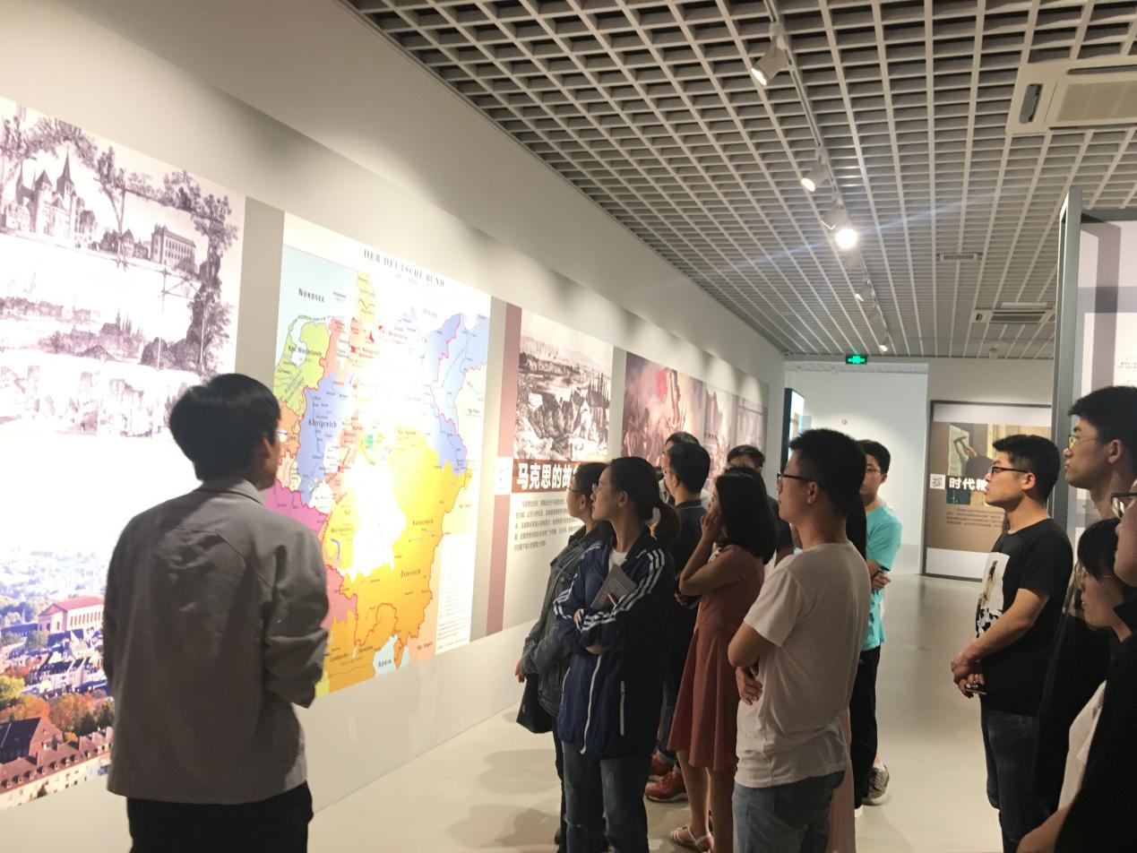 在讲解员的生动讲解以及展厅多样化的呈现形式下,马克思的形象跃然于眼前。参观过程中,同学们仿佛重新回到那个时代,走近了马克思,见证了马克思主义博大精深的思想体系从孕育到形成,再到发展的伟大历程,仿佛完成一次“遇见马克思”的真理探索之旅。