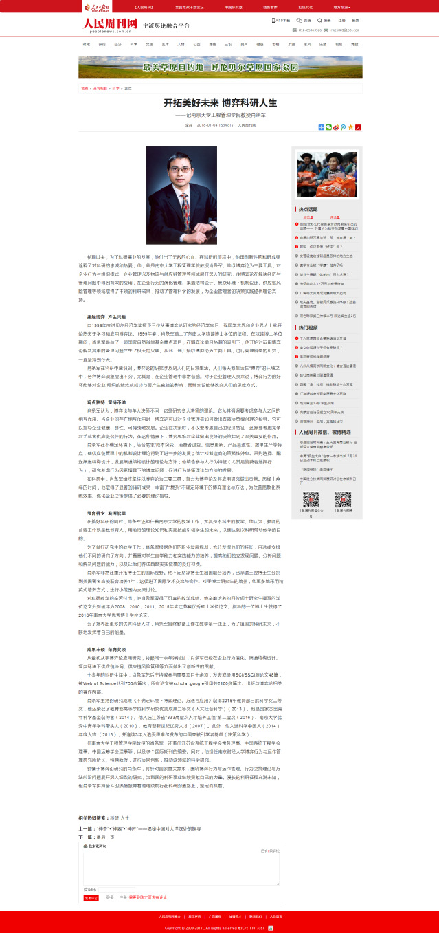 人民周刊网专题访谈肖条军教授