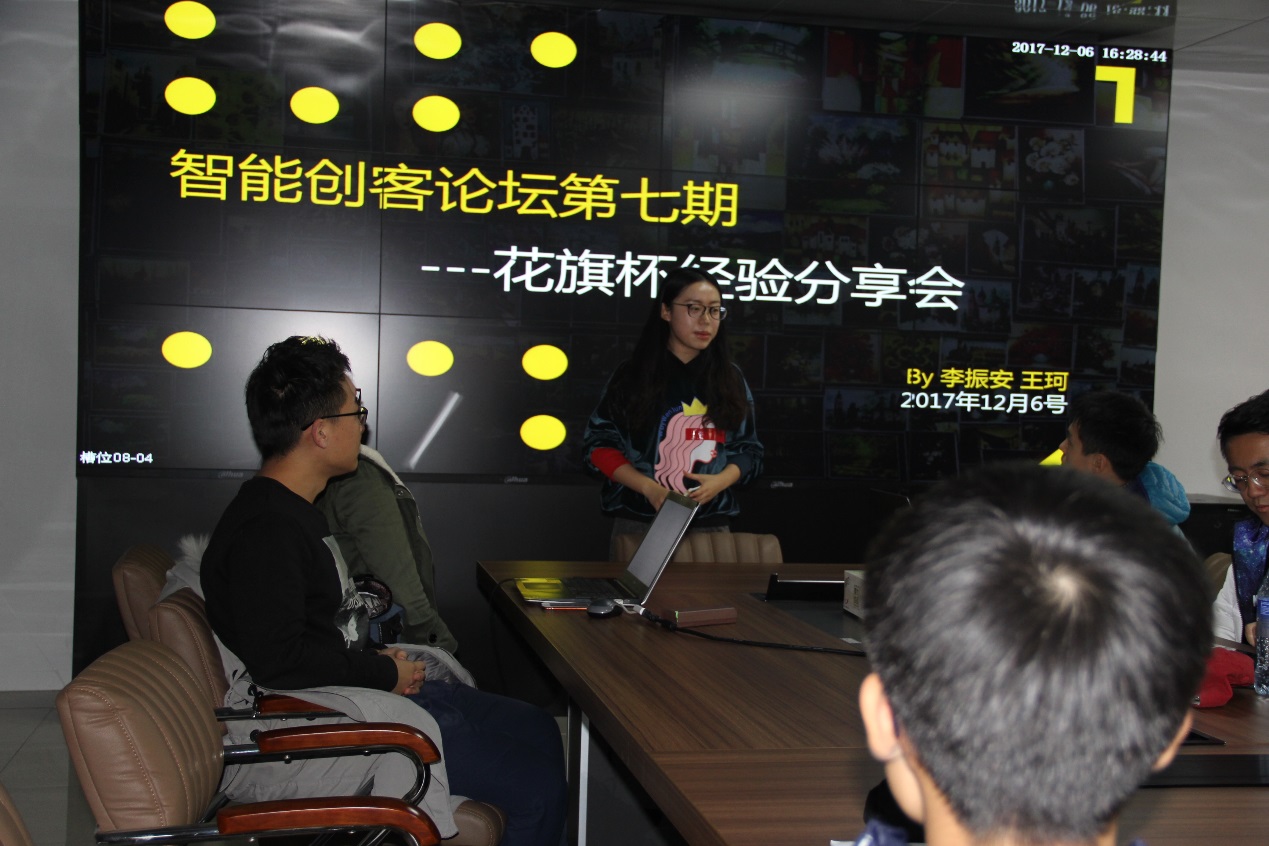 2017年12月6日下午,“智能工程”创客论坛第七期活动在仙林校区基础实验楼乙区408室顺利举行,活动主题为“花旗杯”大赛经验分享。一直以来,金融创新都是决定金融企业核心竞争力的关键因素。“花旗杯”金融创新应用大赛自2005年成立,一直引导着员工将科学技术与金融产业相结合,提出自己的奇思妙想。公司学子多次在“花旗杯”大赛中取得佳绩,此次活动邀请到了2017届“花旗杯”大赛一等奖的两位获得者,王珂、李振安同学为大家分享他们丰富的比赛经验。