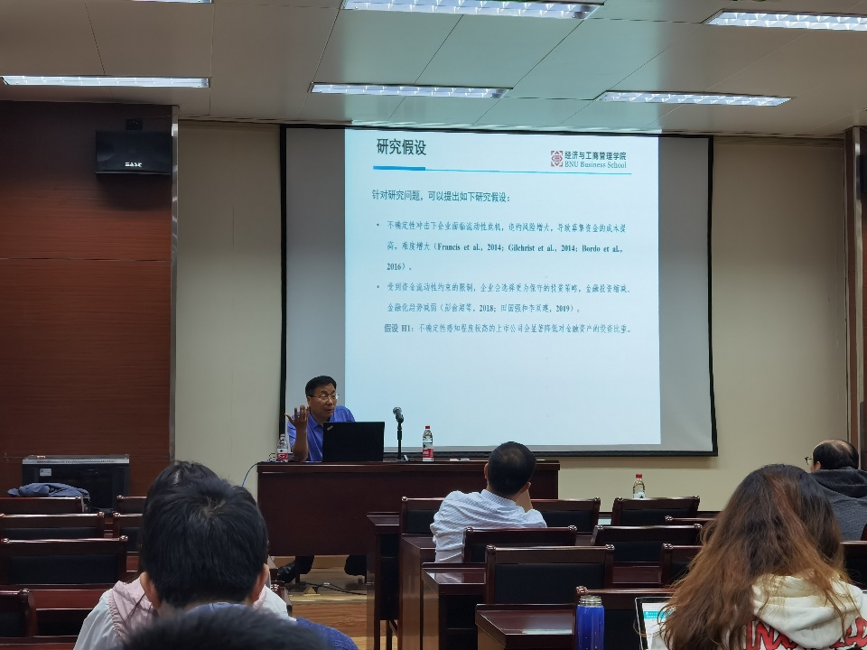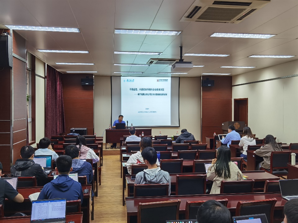 最后,胡海峰教授和现场师生就企业内部资本市场,不确定性和风险,以及企业不确定性指标的度量进行了进一步交流。