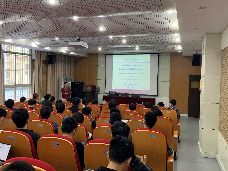 陈彩华老师带来题目为《Algorithmic Design for Big Data Related Optimization》的学术报告,介绍了与大数据相关优化算法,从大规模结构化优化,分布鲁棒性优化和强化学习中的优化三个部分介绍了各种优化算法,同时还和同学们交流了如何在自己的科研中发现问题并解决问题。