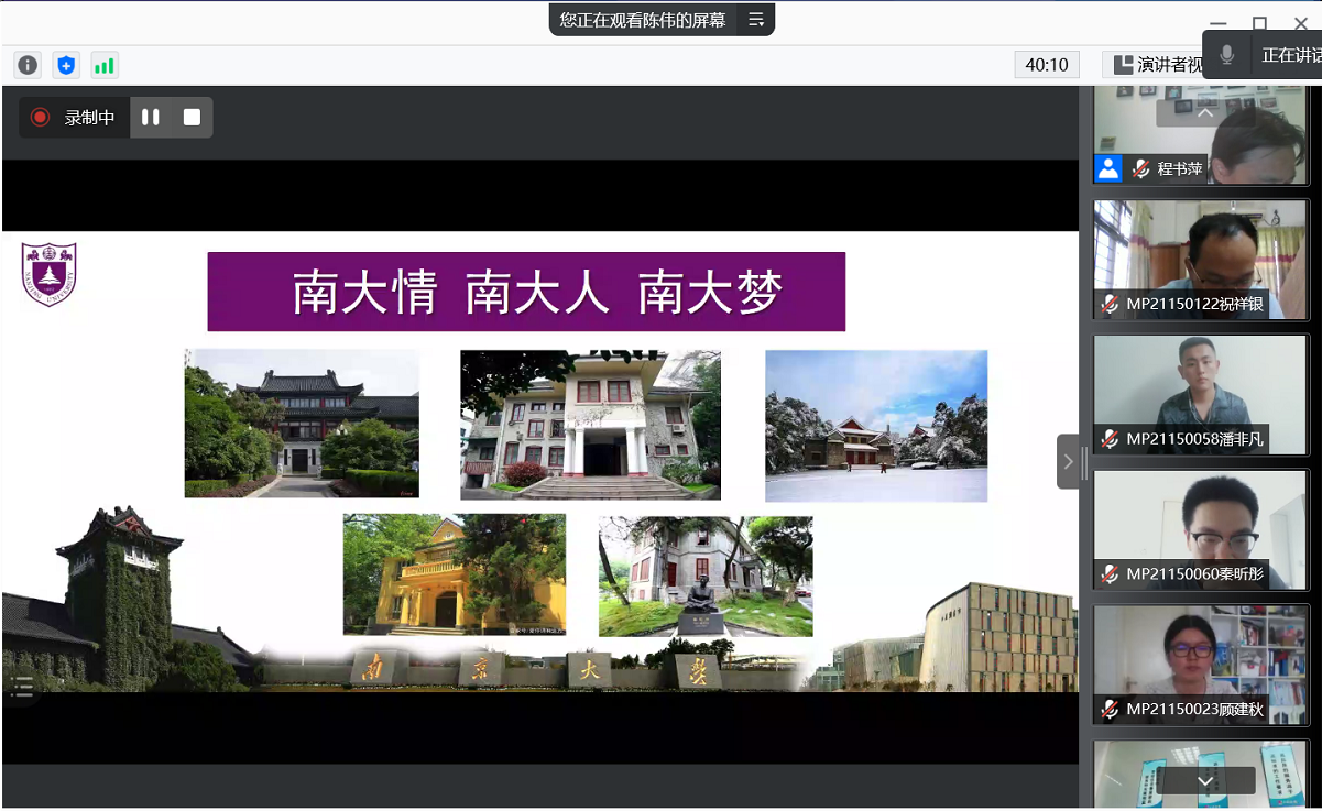 2021年8月29日下午3点,2021级工程管理硕士(MEM)线上开学典礼通过腾讯会议平台举行,公司党委书记陈伟、经理周晶、管理科学与工程系系主任兼MEM教育中心主任沈厚才、MEM教育中心执行主任周跃进、MEM教育中心副主任程书萍以及120余名2021级工程管理硕士研究生参加了开学典礼。典礼由程书萍副主任主持。
