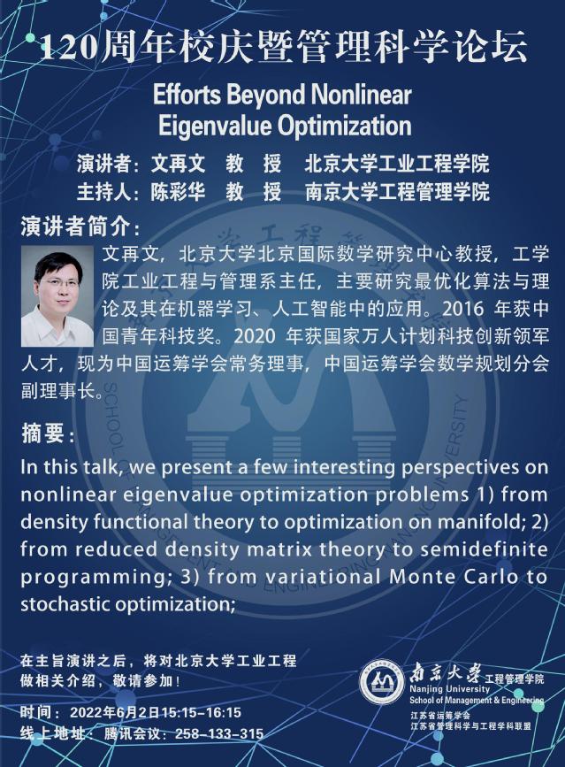 管理科学论坛:Efforts Beyond Nonlinear Eigenvalue Optimization