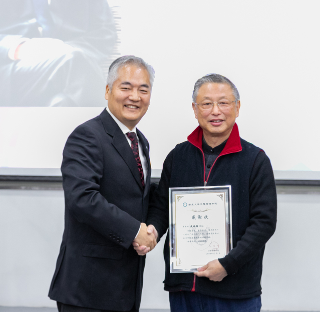 接下来举行了为前辈奋斗者颁奖的仪式。已经退休的教师焦小澄、汪瑞林、盛昭瀚、徐顺利、周跃进和钱志新主任依次上台,由陈力立副书记宣读致敬词,陈伟书记和周晶经理分别向他们颁发感谢状和“协鑫瑞华学院贡献奖”。青年教职工代表为六位老师献花,向前辈奋斗者致以深深的敬意。