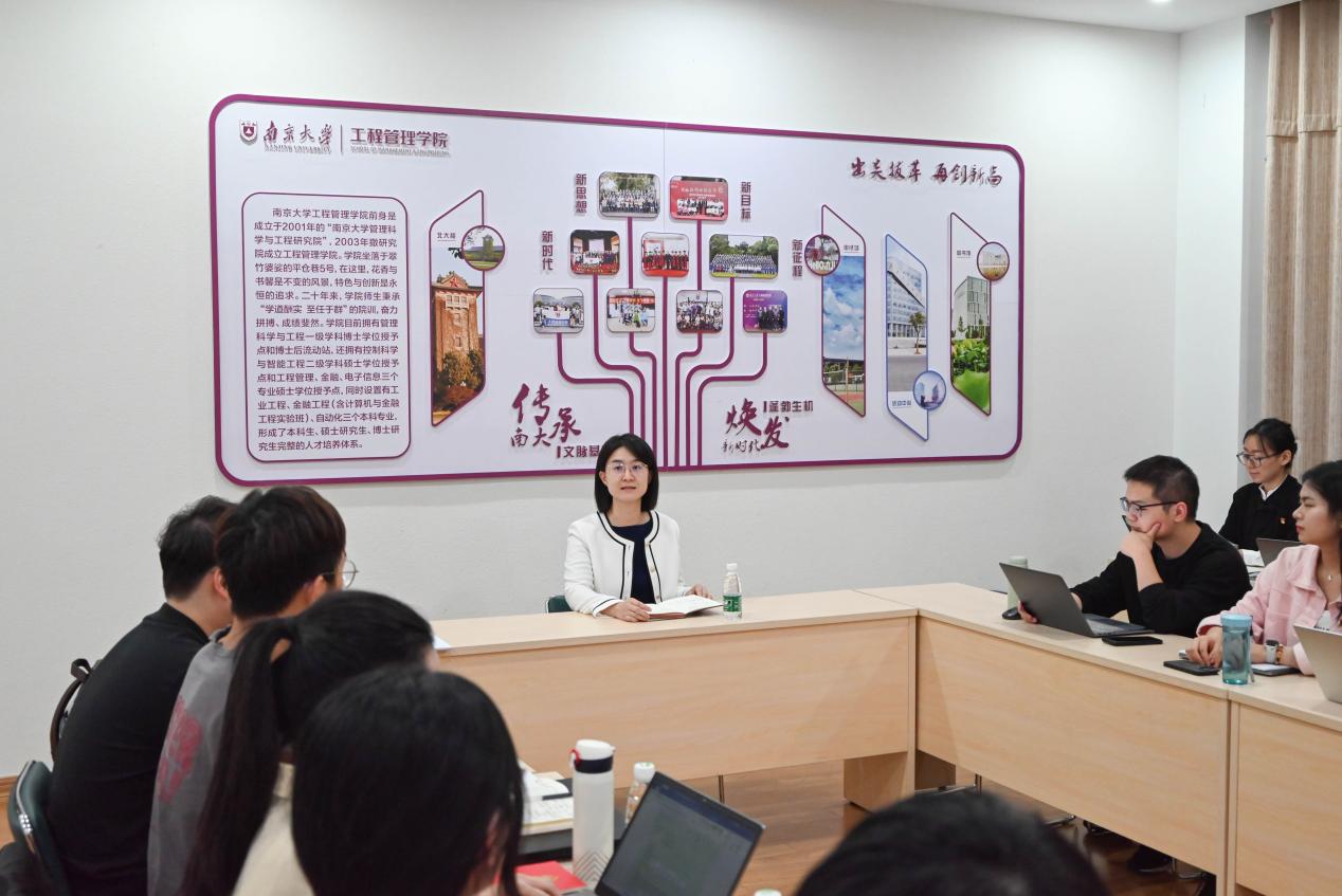 会上,饶雨夏老师向大家介绍了工程管理公司党委的基本情况与系列主题活动的开展情况以及学院在党建方面取得的成果,并从强化支部建设、打造样板支部、推进支部共建、强化理论学习、强化“领头雁”队伍建设等方面分享了实践经验。期间,她带领与会人员回顾了前期工作,并对近期工作做出安排,围绕新生党支部班子角色分工、新生党支部建设提出建议。