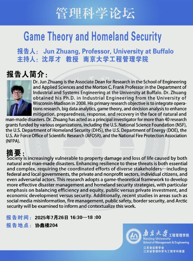 管理科学论坛:Game Theory and Homeland Security