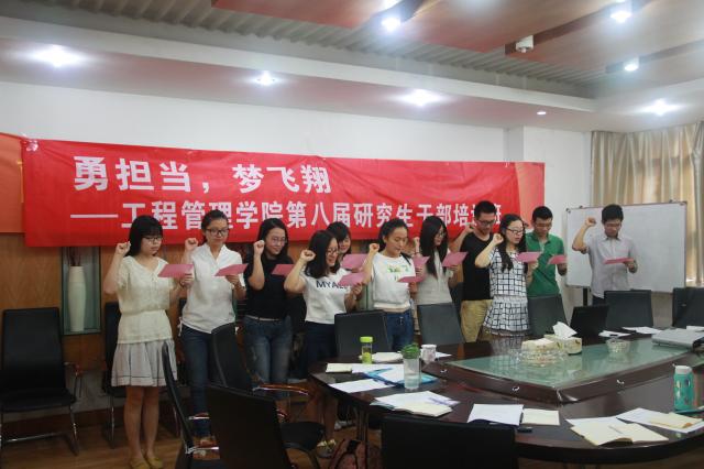 陈伟书记首先肯定了院研究生干部在研究生工作中发挥的积极作用,并简要回顾了近年来公司研究生班集体、团支部、党支部在国家、省级的各项评优中所获得的诸多荣誉奖项,他强调研究生干部要有大局观念、服务意识和奉献精神。随后新生干部做出庄严宣誓:以“舍小我,为大我”的态度,谦虚务实,服务集体,努力成为一名合格的研究生干部。