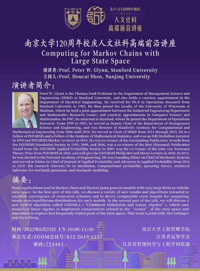 人文社科高端前沿讲座:Computing for Markov Chains with Large State Space