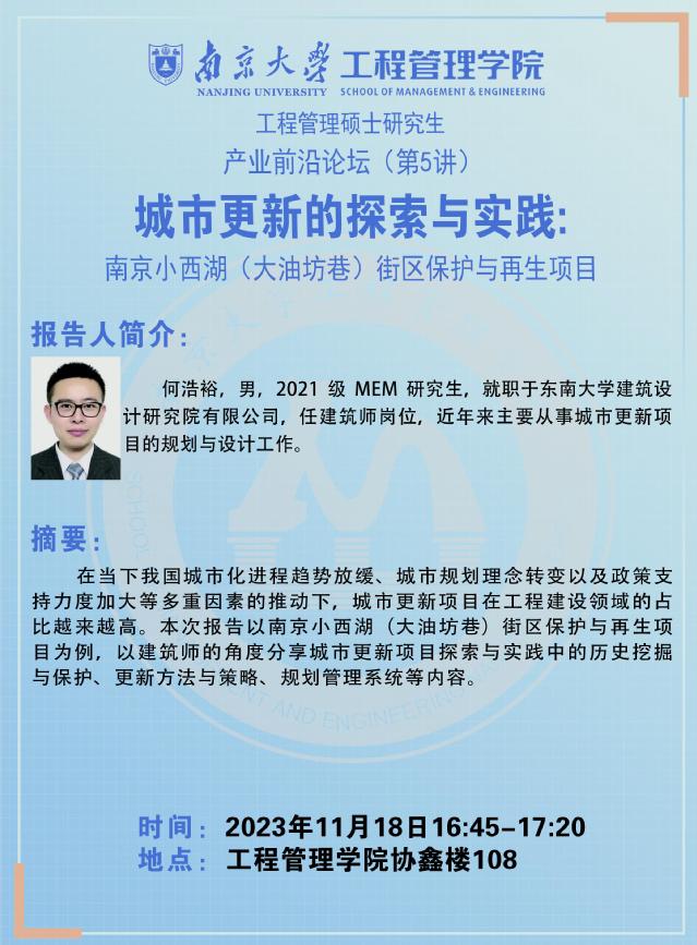 产业前沿论坛:城市更新的探索与实践: 南京小西湖(大油坊巷)街区保护与再生项目
