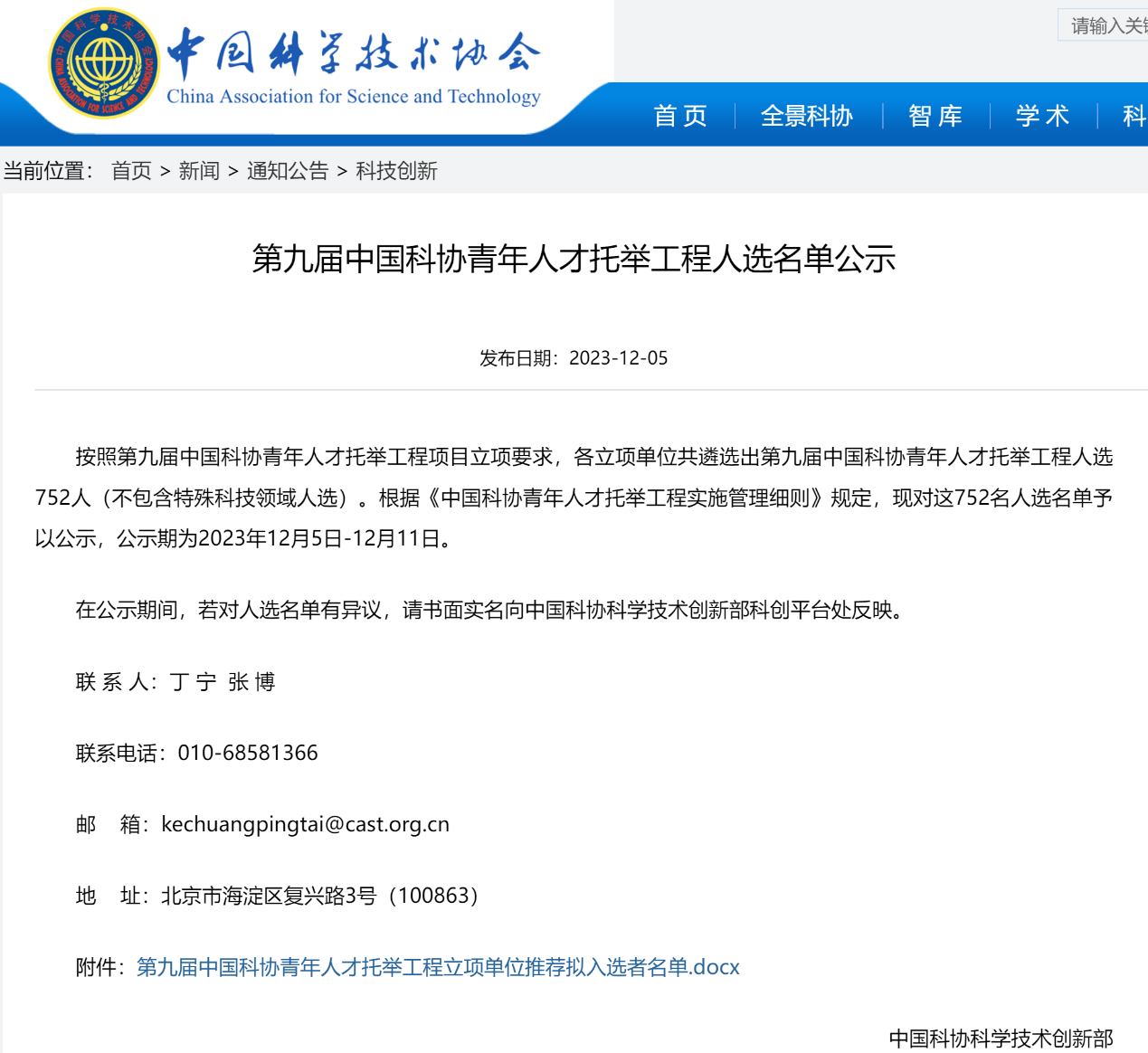 “青年人才托举工程”项目是中国科协于2015年设立的国家级青年人才计划,旨在选拔和培养有较大创新能力和发展潜力的青年科技人才,为国家和社会输送高素质的科研后备力量。本届项目围绕“四个面向”,以能力、素质、潜质为标准,重点支持积极投身基础研究和交叉学科领域研究的青年学者,各立项单位共遴选出来自全国高校和科研单位的752名青年科技人才(不含特殊科技领域入选者)。