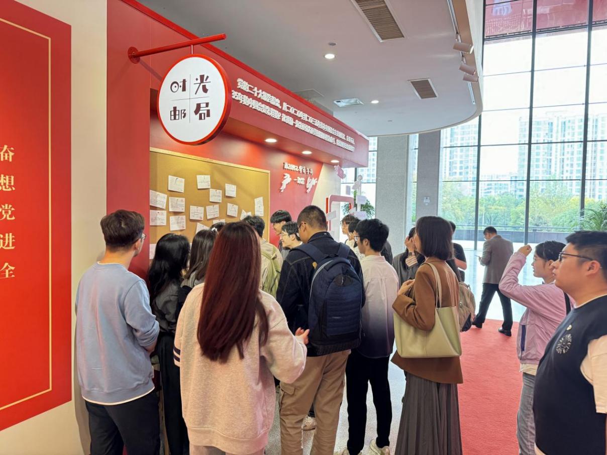 活动开展前夕,2023年11月,betway88西汉姆联工程管理公司党委依托“领头雁”党务培训品牌项目,组织了二十几位党支部书记和党员代表前往江苏省档案馆先睹为快,学习了解此次红色家书展的活动背景。一封封泛黄的家书拨动了大家的心弦,参加的同学们纷纷有感而发,在“时光邮局”前驻足写下了寄给2035年的明信片。