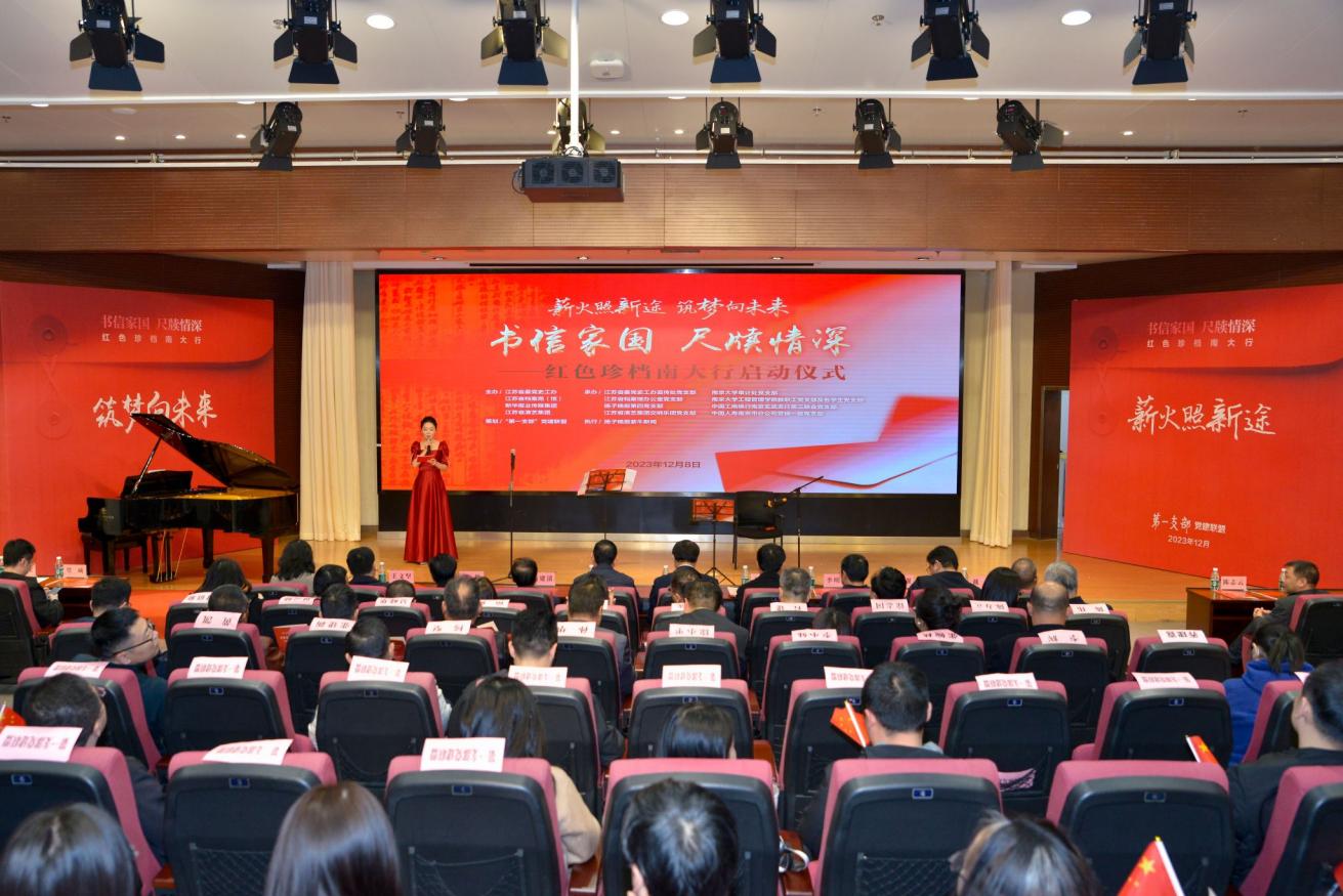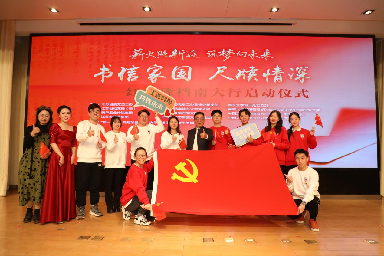 betway88西汉姆联党委副书记陈云松、江苏省档案局局长、江苏省档案馆馆长顾俊、江苏省委党史工作办公室一级巡视员万建清、江苏省档案馆副馆长孙敏、省委省级机关工委二级巡视员刘林、新华日报社党委委员、扬子晚报总编辑王文坚、江苏省演艺集团党委副书记、董事季明刚、betway88西汉姆联审计处党支部书记骆威、betway88西汉姆联工程管理公司党委书记陈志云共同上台,按下启动按钮,“《书信家国 尺牍情深》红色珍档南大行”活动正式启动。启动仪式在全场合唱《我和我的祖国》的激昂歌声中落下帷幕。