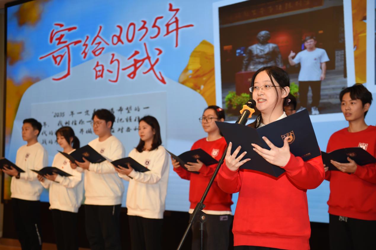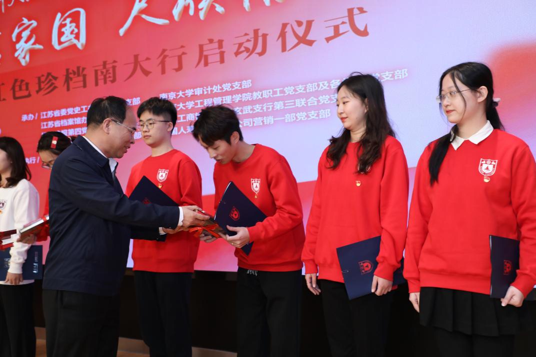 江苏省委党史工作办公室一级巡视员万建清为参与朗诵的十名同学赠送《致未来书》——这些雨花台烈士留下的遗书、信件、诗词,既是他们给亲人和战友留下的话,也是对后来者的深情告白和谆谆嘱托。
