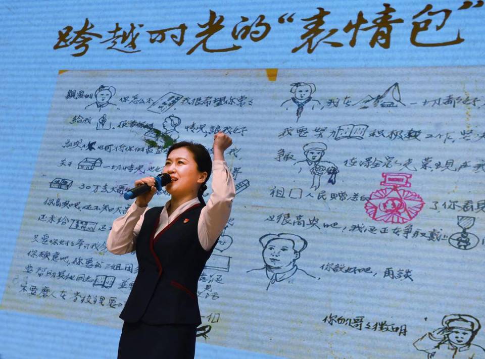 在从抗美援朝战场飞回祖国的众多家书中,志愿军战士李征明的家书显得与众不同。因为妹妹的年龄还很小,识字不多,李征明就在信中画上了许多形象生动的图画。图文并茂生动的“表情包”饱含对妹妹的疼爱,对亲人的思念……伴随着现场钢琴演奏的音乐缓缓流淌,江苏省档案馆兰台红青年宣讲团成员李婧动情地为大家讲述:“李征明从参加抗美援朝战争到牺牲,他从未间断给家人写信。但提及自己情况时,说的最多的就是一切都好。他将所有的温柔寄给了家人,却把战争的残酷留给了自己。1953年6月23日,李征明主动申请上前线,在战斗中不幸牺牲,生命永远定格在了23岁。”