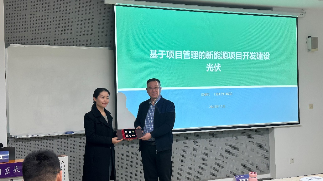 在随后的互动交流环节,李亚红学长与同学们深入交流讨论。对项目管理过程中人力资源的管理,标准化体系的建设,项目投资中的财务管理等问题做了详细解答,并帮助大家对新能源光伏的发展历程做了详尽的梳理。