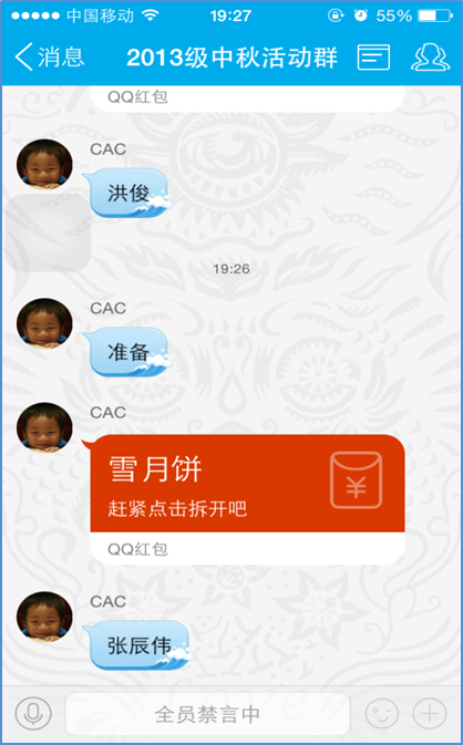 “准备”、“抢”……伴随着一行行聊天字符的跳动,betway88西汉姆联2013级中秋活动QQ群于9月27日晚7:00准时热闹了起来,辅导员郭亚敏一家正与2013级班委们在办公室为同学们组织中秋抽奖活动。
