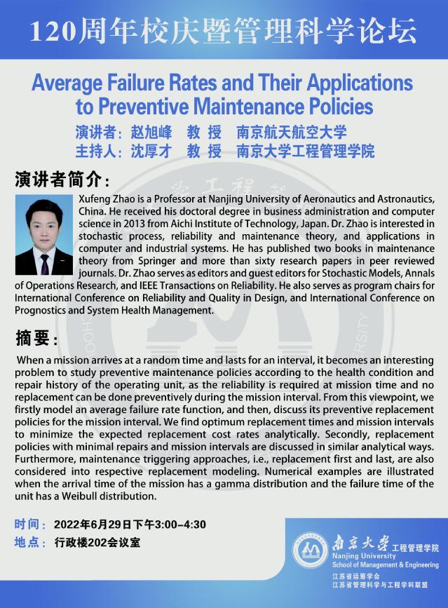 管理科学论坛:Average Failure Rates and Their Applications to Preventive Maintenance Policies