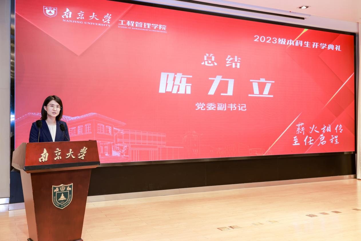 最后,陈力立总结发言。她希望同学们能够在今后的学习生活中践行院训,勤奋刻苦、注重方法、驾驭知识、求是创新,通过踏实的积累获得直面未知的勇气和能力;主动拥抱老员工活的偶然性,做好逆转思维框架的准备,在学院交叉复合的氛围中实现突破与创新。