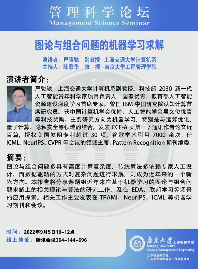 管理科学论坛:图论与组合问题的机器学习求解