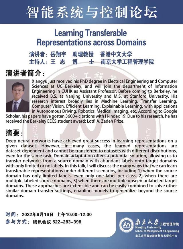 智能系统与控制论坛:Learning Transferable Representations across Domains