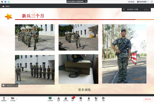 来自2021级物流工程与管理专业的王中豪同学带来《热血铸军魂》主题分享,讲述自己在中国人民解放军75222部队的两年军旅生活,在成为新兵的三个月中,爬铁丝网、三千米跑,感受到军队崇尚荣誉、拼搏战斗、自律自强的氛围。两年的军旅生活让他更加懂得珍惜、感恩与自强。