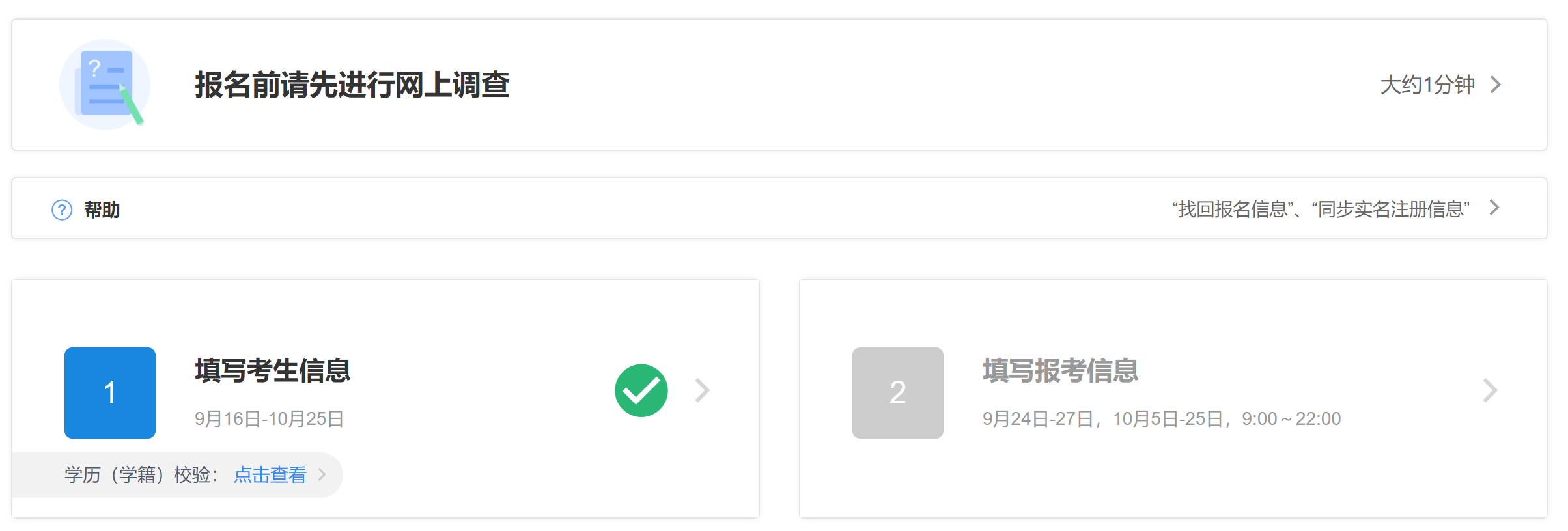 1.进入中国研究生招生信息网(https://yz.chsi.com.cn),完成注册后,开始正式报名。