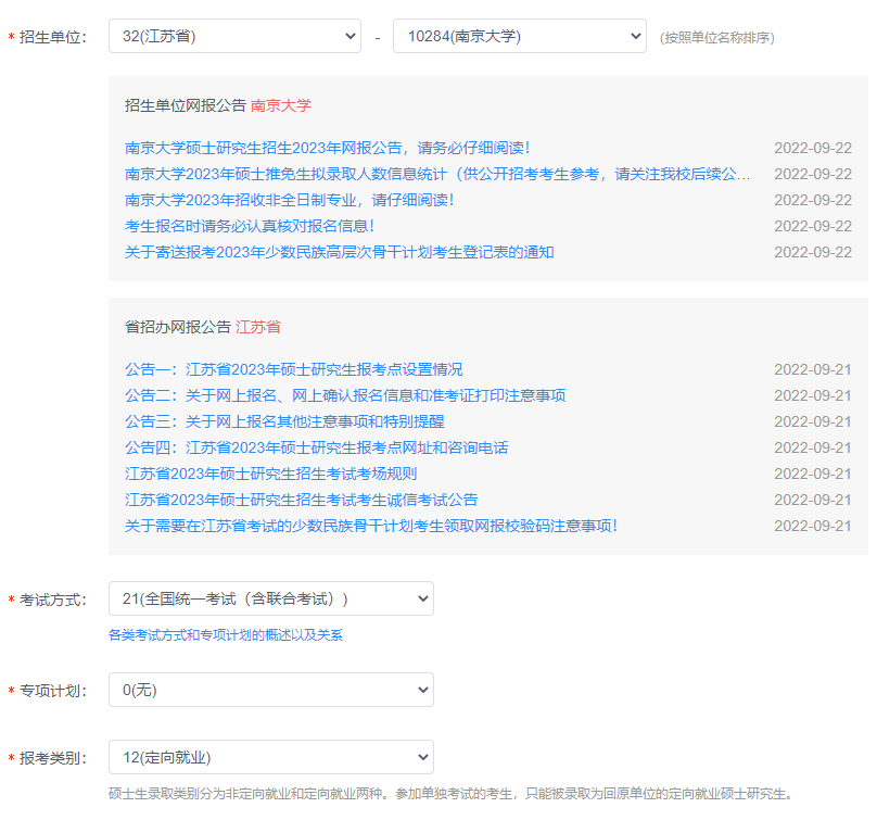 (1)考生提交报考信息后,不论是否已支付报考费,所填报的“招生单位”、“报考点”、“考试方式”三项内容不能更改!
