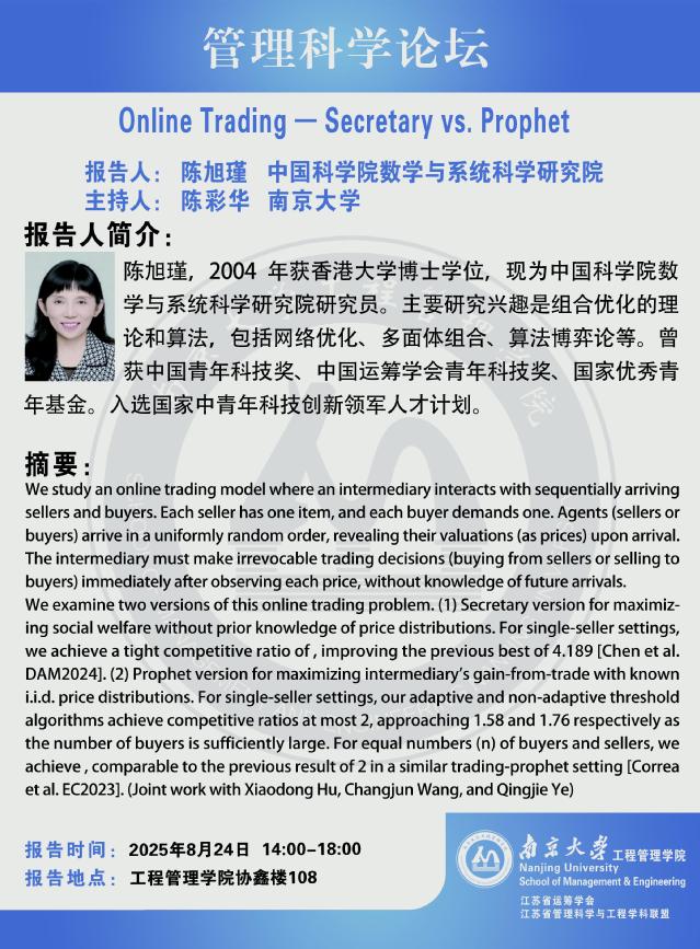 管理科学论坛:Online Trading- Secretary vs. Prophet