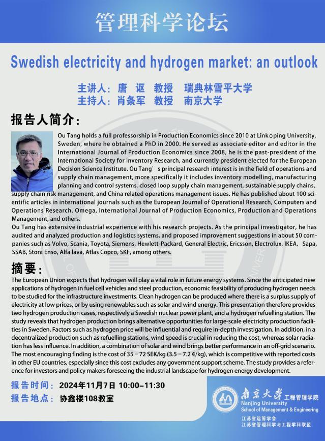 管理科学论坛:Swedish electricity and hydrogen market: an outlook